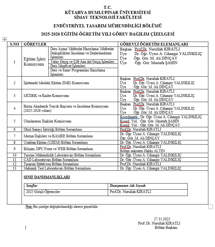Endüstriyel Tasarım Mühendisliği Bölümü